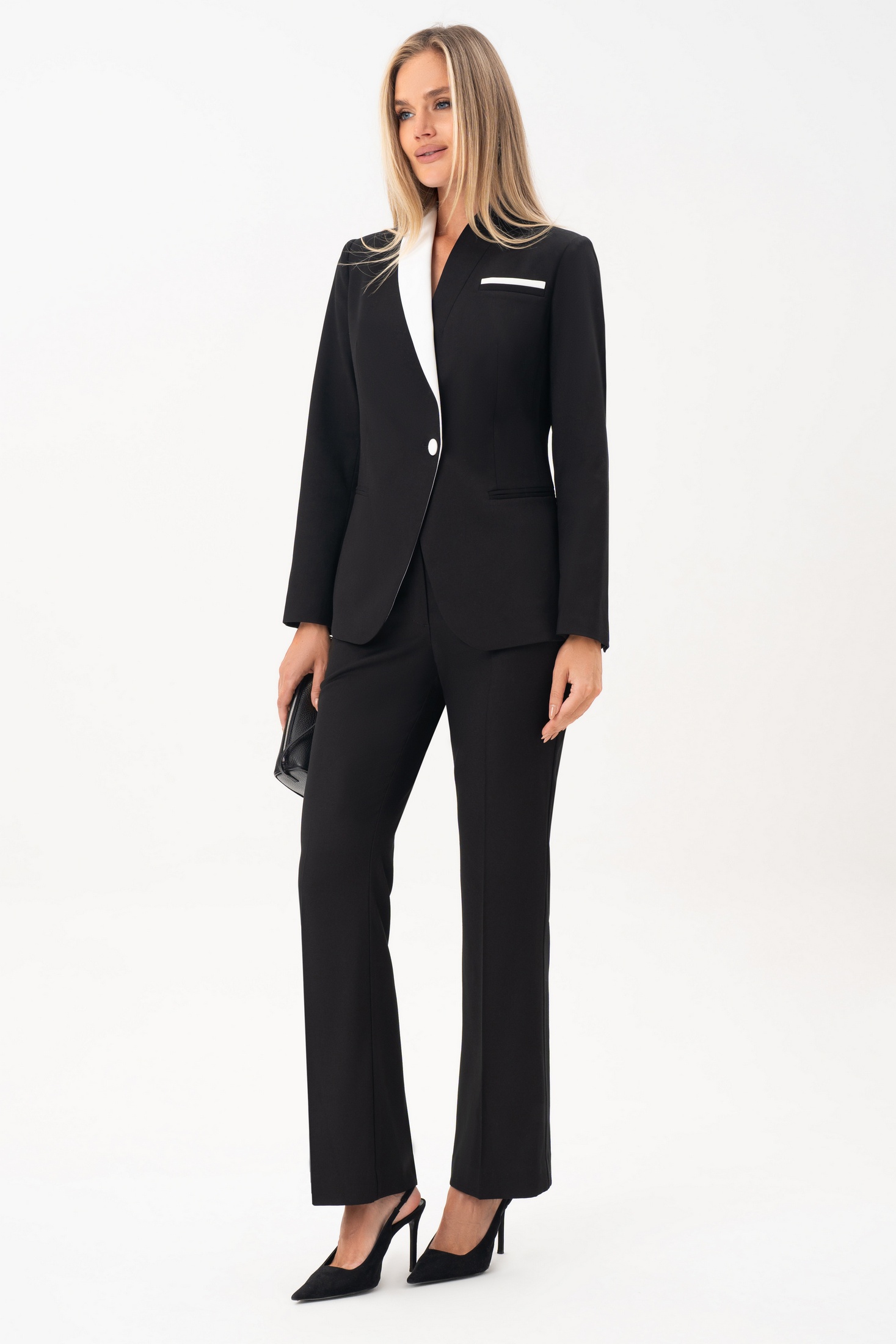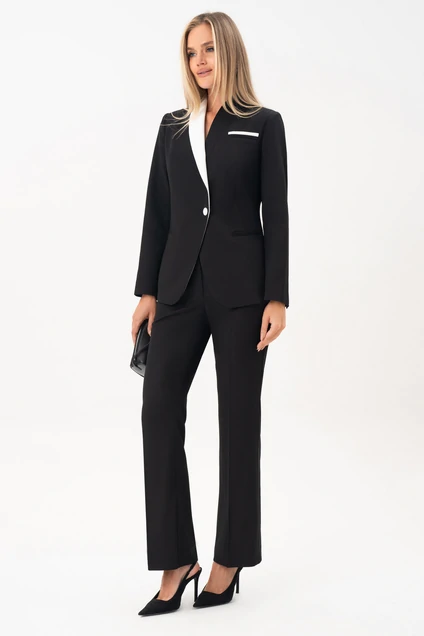Элегантный черный брючный костюм URS — воплощение женственности, уверенности и безупречного вкуса. Этот женский брючный костюм создан для современных женщин, которые ценят классику, элегантность и комфорт в каждом движении. Стильный контраст черного и белого придает образу благородную строгость и подчеркивает индивидуальность, создавая гармоничное сочетание делового и утонченного стиля. Костюм женский ЮРС, нарядный, состоит из жакета и брюк, выполнен из костюмно - плательной ткани. костюмно-плательной ткани.