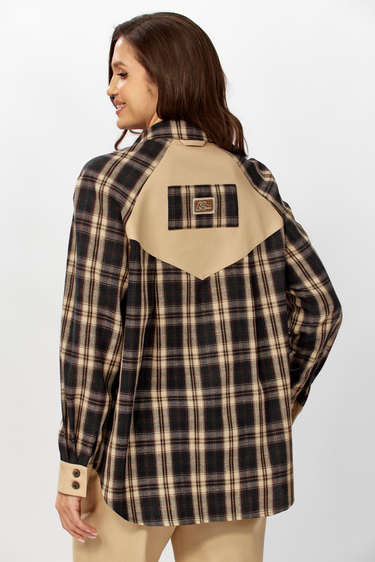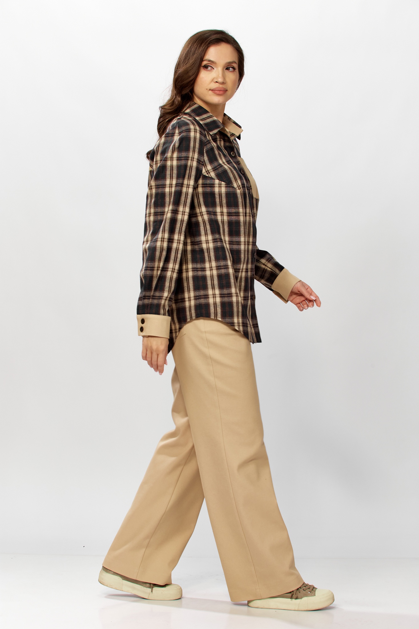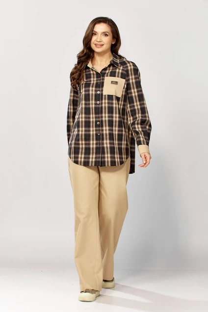 Костюм брючный 632 Zigzag Style — отличное решение для тех, кто ценит комфорт и стиль в повседневной жизни. Коллекция бренда Zigzag Style выполнена в стильной сине-бежево-коричневой гамме, которая прекрасно сочетается с плотным хлопком. Этот материал облегчает уход и подчеркивает форму. Рубашка с клетчатым узором, накладным карманом и классическим воротником на стойке создает расслабленный, но изысканный образ. Песочные джинсовые брюки прямого покроя с высокой посадкой визуально вытягивают силуэт, добавляя современности комплекту. Идеально подходит для осеннего или весеннего гардероба благодаря плотной ткани, которая держит форму. Этот ансамбль станет основой вашего гардероба для прогулок и неформальных встреч.