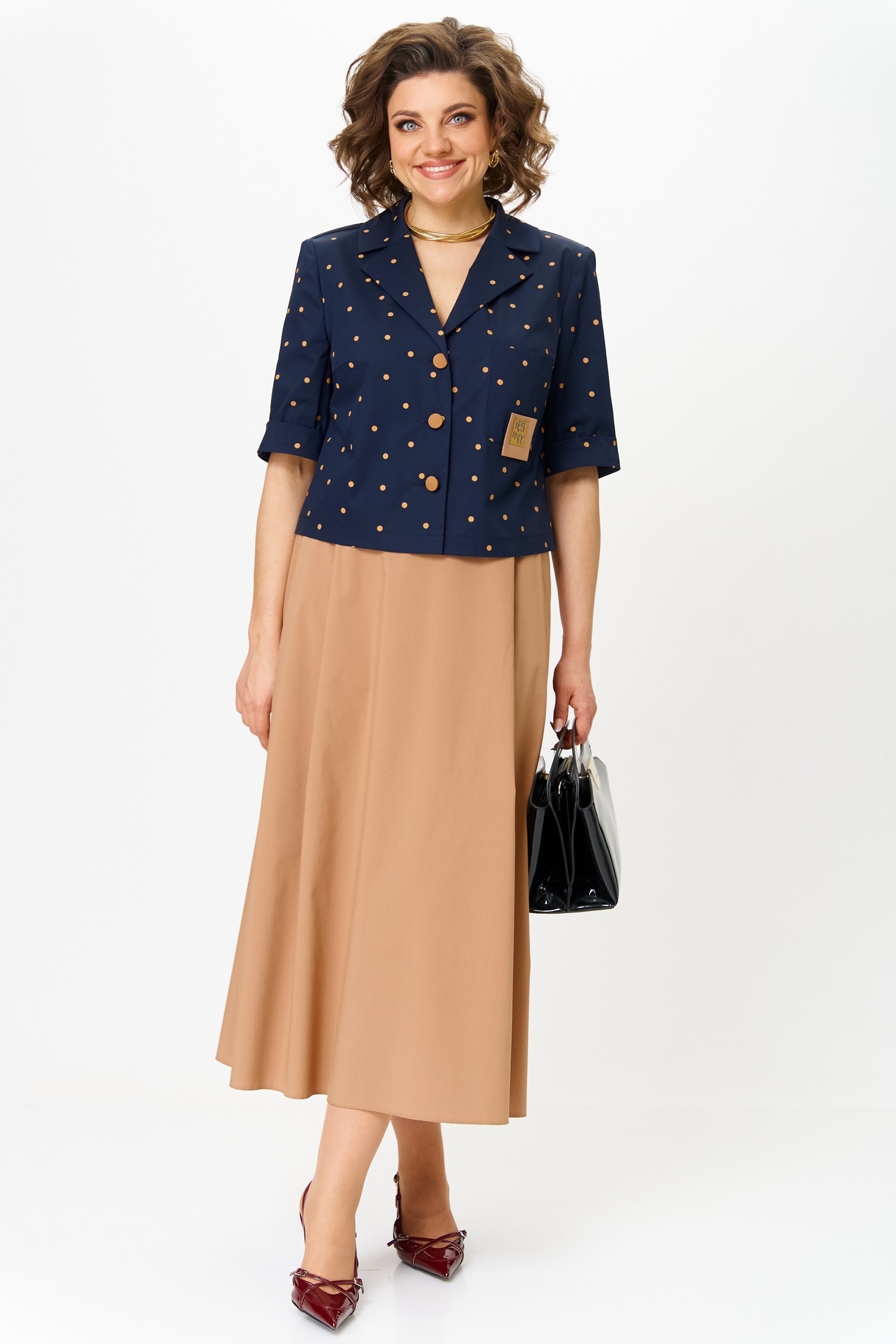 Костюм с юбкой 24120А капучино+синий AIRA style