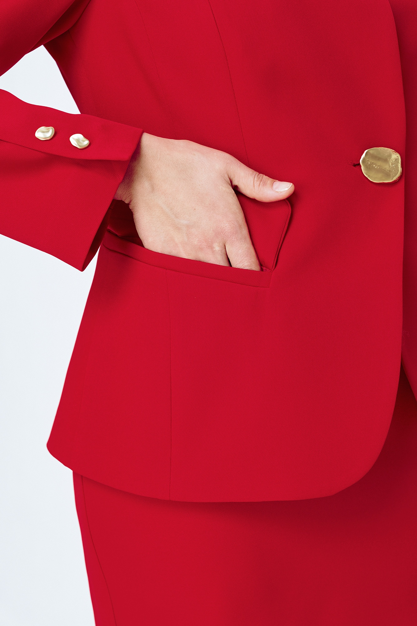 Костюм с юбкой 2490 красный ALANI — стильное дополнение для вашего гардероба. Коллекция бренда ALANI предлагает женственный костюм, выполненный из ткани платьевого ассортимента с составом 67% полиэстер, 31% вискоза и 2% спандекс. Этот материал обеспечивает комфорт и лёгкость в носке. Костюм состоит из юбки и пиджака, что делает его идеальным для офисного или делового стиля. Яркий красный цвет выделяет изделие, подчёркивая вашу индивидуальность. Костюм подходит для осеннего и весеннего сезонов, благодаря своей универсальности, он замечательно подойдёт для рабочих встреч и официальных мероприятий.