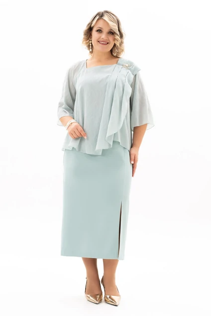 Костюм с юбкой 4125-2 Algranda (Новелла Шарм) — это гармоничное сочетание стиля и комфорта. Коллекция бренда Algranda предлагает изделие из полиэстра и вискозы с добавлением эластана, обеспечивающее эластичность и удобную посадку. Фасон включает юбку с разрезом и боковыми карманами, а также блузу с нагрудными выточками и мягкими складками. Длина юбки 90 см, блузы — 59 см, рукава — 39 см. Костюм выполнен в светло-голубом цвете, что придаёт нежность и универсальность. Эта модель подходит для офиса, вечернего выхода и повседневного использования в демисезонную погоду. Комфортная подкладка юбки и эластичная тесьма на поясе обеспечивают удобную посадку. Наличие съёмной броши добавляет изящную деталь.