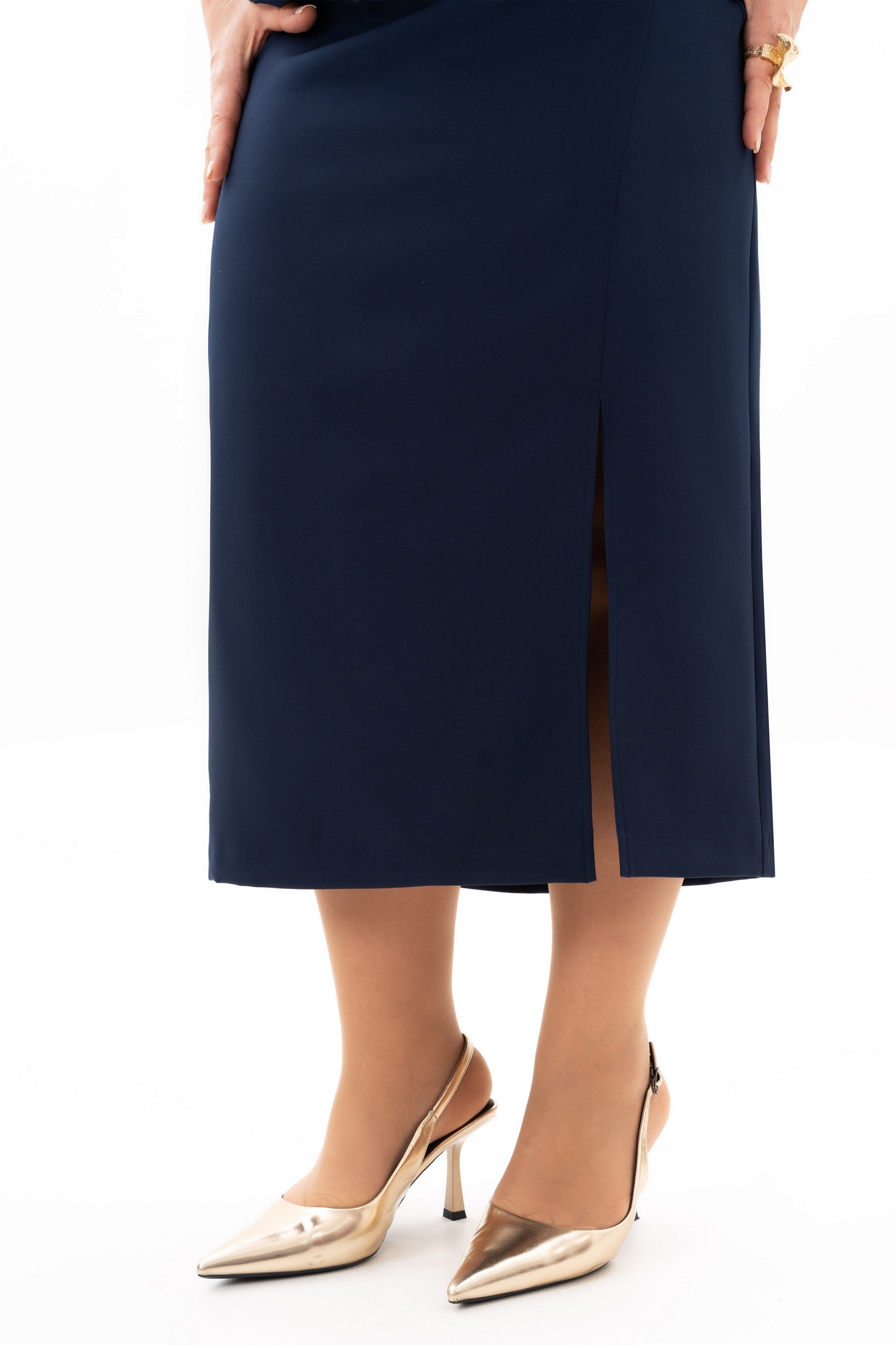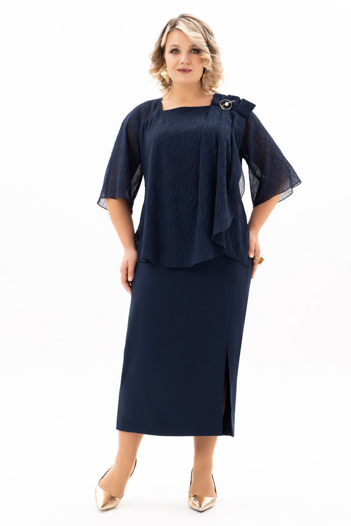 Костюм с юбкой 4125 Algranda (Новелла Шарм) мгновенно привлекает внимание своим изысканным дизайном. Коллекция бренда Новелла Шарм демонстрирует сочетание комфорта и стиля, идеального для офисной или вечерней атмосферы. Костюм выполнен из полиэстра и вискозы, что обеспечивает прочность и лёгкость ухода, а эластан добавляет эластичности. Блуза с нагрудными выточками, фигурным вырезом и декоративными элементами, такими как мягкие складки и съёмная брошь, подчёркивает женственность. Разрезы на юбке и её зауженная к низу форма добавляют динамичности образу. Длина блузы составляет 59 см, юбки — 90 см, рукава 39 см, что подходит для многих типов фигуры. Эластичная тесьма на поясе и застёжка на молнию сзади обеспечивают удобную посадку. Насыщенный синий цвет дополнит ваш гардероб, сочетаясь с различными аксессуарами. Идеален для разных сезонов — весны, осени, прохладных летних вечеров.