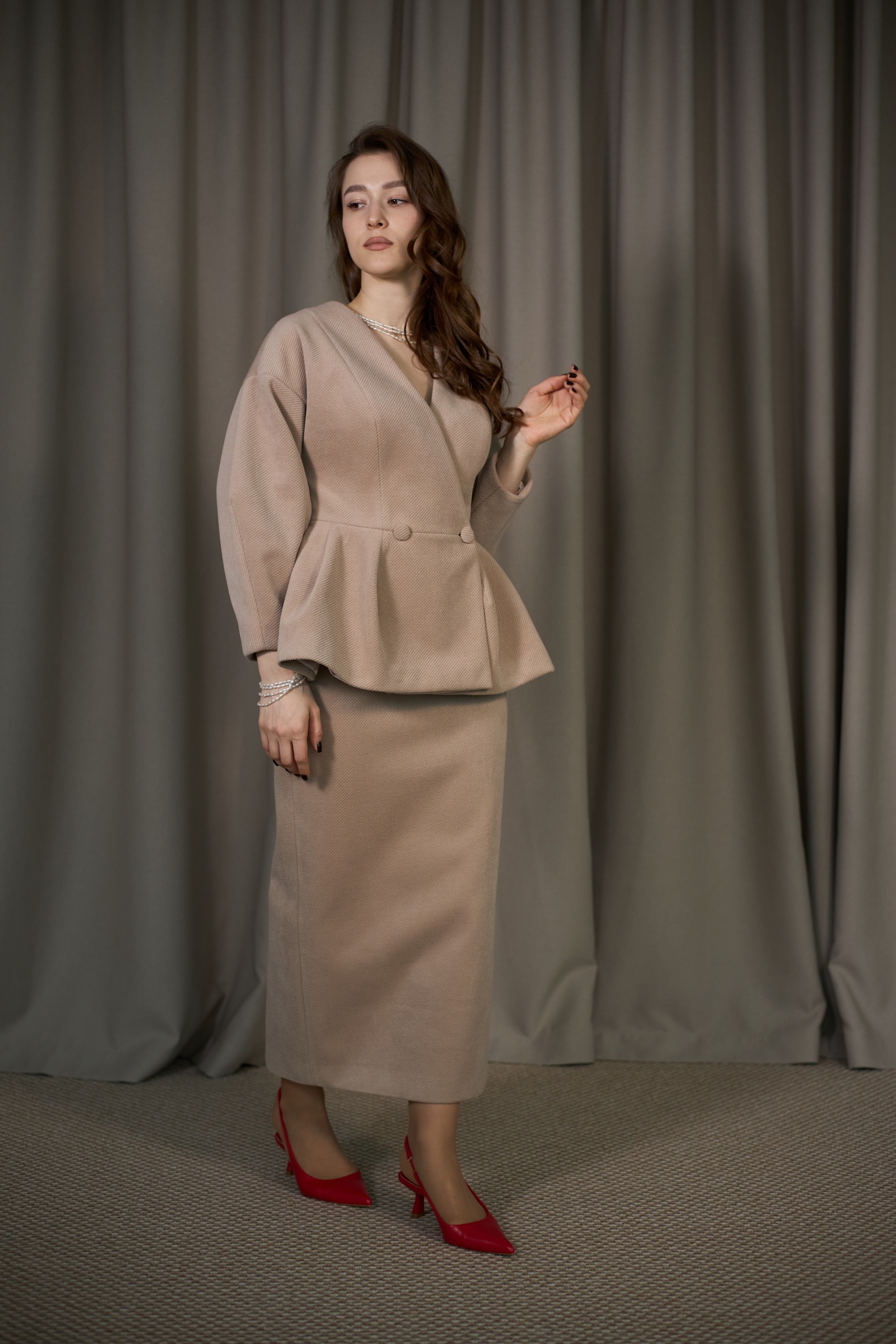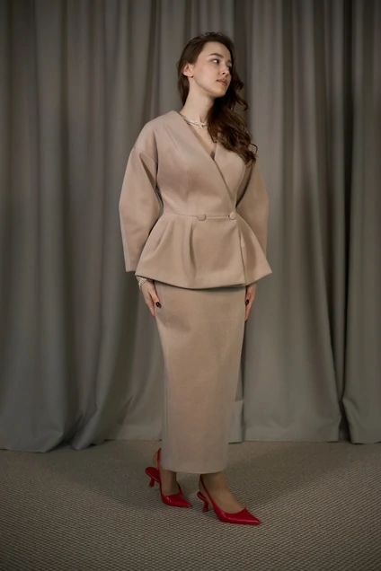 Костюм с юбкой 6007 бежевый ALIN — это стильный выбор для тех, кто ценит комфорт и элегантность в одном изделии. Коллекция бренда ALIN предлагает приталенный двубортный жакет с V-образным вырезом и миди-юбку с потайной молнией. Выполнен из костюмно-пальтовой смесовой ткани с добавлением шерсти, костюм подходит для осенне-весеннего сезона. Бежевый оттенок подчеркивает универсальность комплекта, делая его идеальным для офисного или делового стиля. Особенности дизайна включают спущенные укороченные рукава и потайные обтачные петли, что добавляет изысканности силуэту. Отличное решение для прохладных дней и деловых встреч.