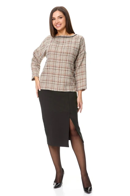 Костюм с юбкой 1042 песочный + коричневый Anastasia