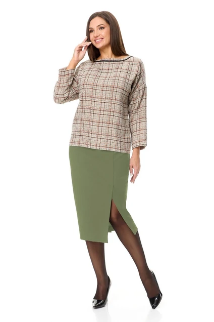 Костюм с юбкой 1042 песочный + светло-оливковый Anastasia