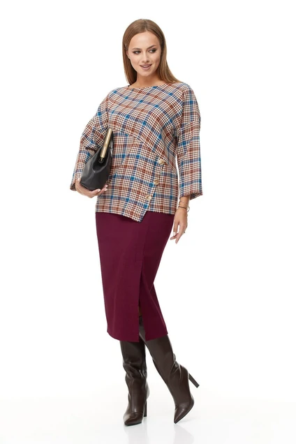 Костюм с юбкой 1043 марасала + клетка Anastasia