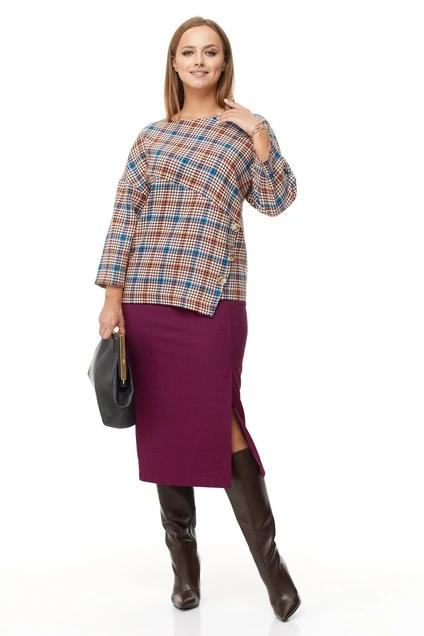 Костюм с юбкой 1043 слива + клетка Anastasia
