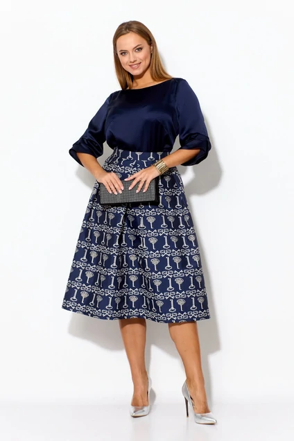 Костюм с юбкой 1057 темный сапфир Anastasia