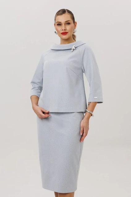 Костюм с юбкой 1163 серо-голубой Anastasia