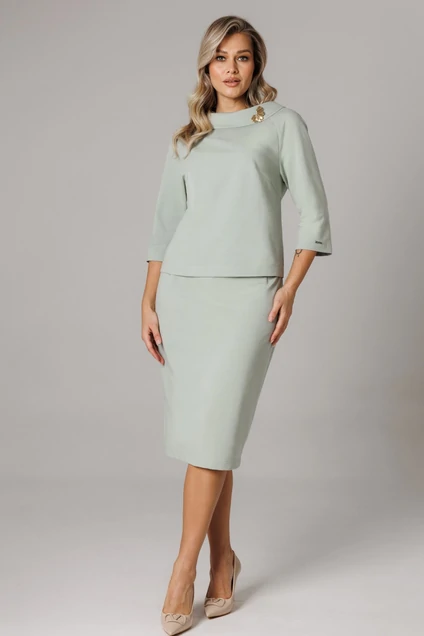 Женский костюм двойка из хлопкового трикотажного полотна станет базой вашего гардероба. Этот деловой комплект с блузкой плюс сайз станет отличным выбором для офисных работников и всех, кто ценит комфорт и стиль в одежде. Юбка без подкладки обеспечивает свободу движения, а длина (миди) делает ее универсальной для любого типа фигуры. Блузка без застежки с воротником шалевой формы - это не только функциональный, но и стильный женственный акцент в образе. Длина рукава в блузке plus size 3/4 делает костюм универсальным. В каччестве декора - брендированная нашивка на рукаве и брошь. Этот классический костюм создан для повседневной носки и будет радовать вас своей мягкостью и комфортом даже в самые холодные дни. Комплект шикарный и создан с учетом особенностей женской фигуры и идеально подойдет для обладательниц пышных форм, для высоких и невысоких. Он одинаково хорошо смотрится на стройных и плюс сайз, с большой и маленькой грудью. Благодаря своему строгому и элегантному дизайну, юбочный костюм станет незаменимым элементом вашего гардероба и поможет создать множество деловых и вечерних образов. Почувствуйте себя уверенно и комфортно с стильным костюмом от "Анастасия"! Комплект без подклада, не на флисе, без начеса, ткань не просвечивает. Брошь в комплекте. ВНИМАНИЕ! Брошь может отличаться от фото. Длина блузки-53см. Длина рукава (от горловины) - 55см. Длина юбки-72см.