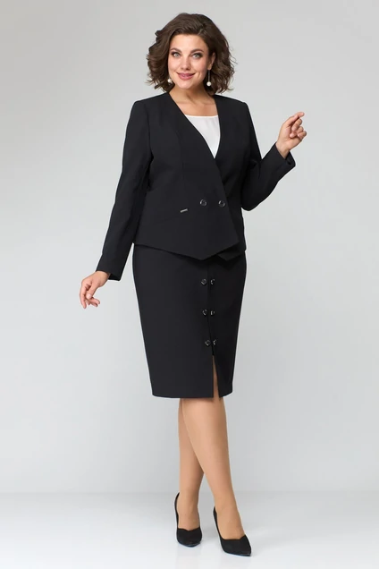 Костюм с юбкой 1117 черный ANASTASIA MAK