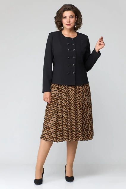 Костюм с юбкой 1118 черный + бежевый ANASTASIA MAK