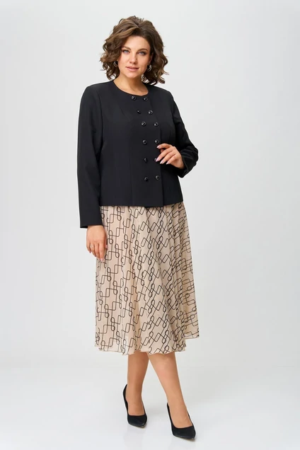 Костюм с юбкой 1118 черный + персиковый ANASTASIA MAK