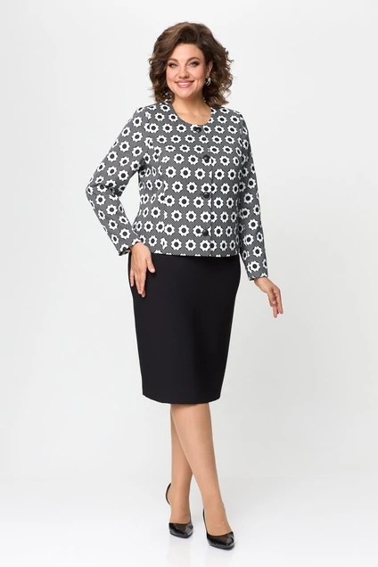 Костюм с юбкой 1132 черно-белый ANASTASIA MAK