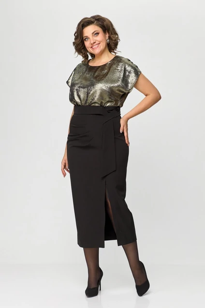 Костюм с юбкой 1146 черный + золото ANASTASIA MAK