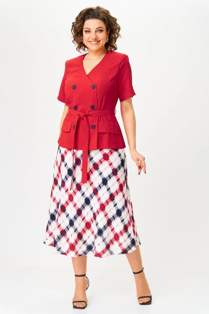 Костюм с юбкой 1256 красный + клетка ANASTASIA MAK
