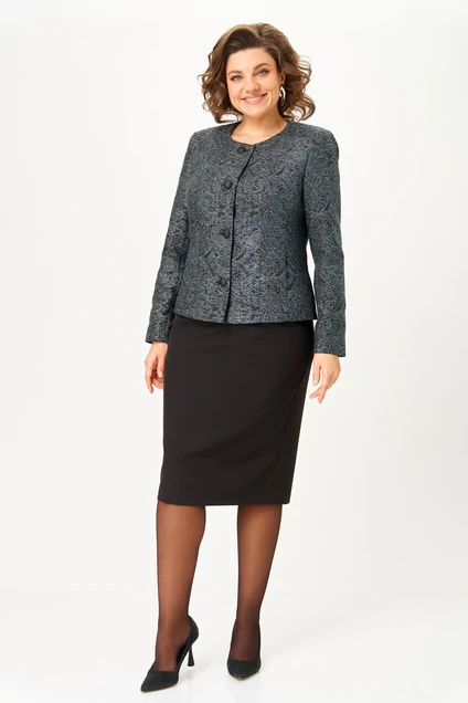Костюм с юбкой 544-С серый + черный ANASTASIA MAK