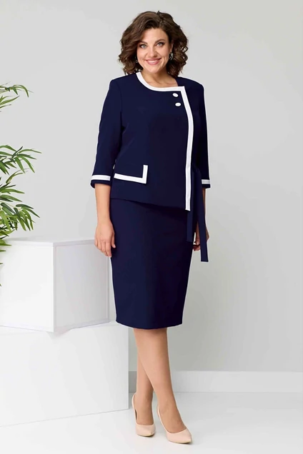 Костюм с юбкой 1395 синий Асолия