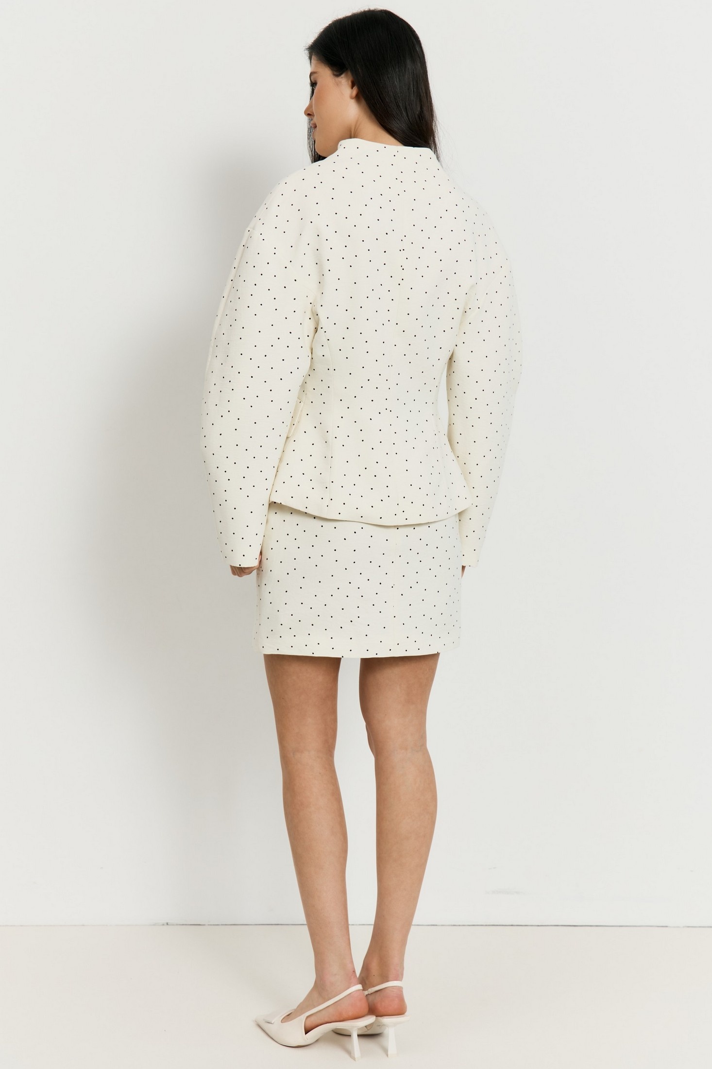 Костюм с юбкой 3525 ATTIKA представляет собой уникальную двойку из плотной формоустойчивой ткани с классическим принтом в мелкий горошек. Коллекция бренда ATTIKA воплощает в себе стильный и современный дизайн. Жакет приталенного фасона с архитектурной линией кроя и объемными рукавами «баллон» создает уникальный образ. V-образный вырез без воротника и застежка на контрастные пуговицы формируют минималистичный стиль. Функциональные прорезные карманы с клапанами добавляют практичности. Плотный состав из полиэстера и вискозы обеспечивает комфорт и износостойкость. Идеально подходит для весенне-летнего сезона и нарядных мероприятий. Бежевый цвет и горошек завершат образ в стиле casual или office.