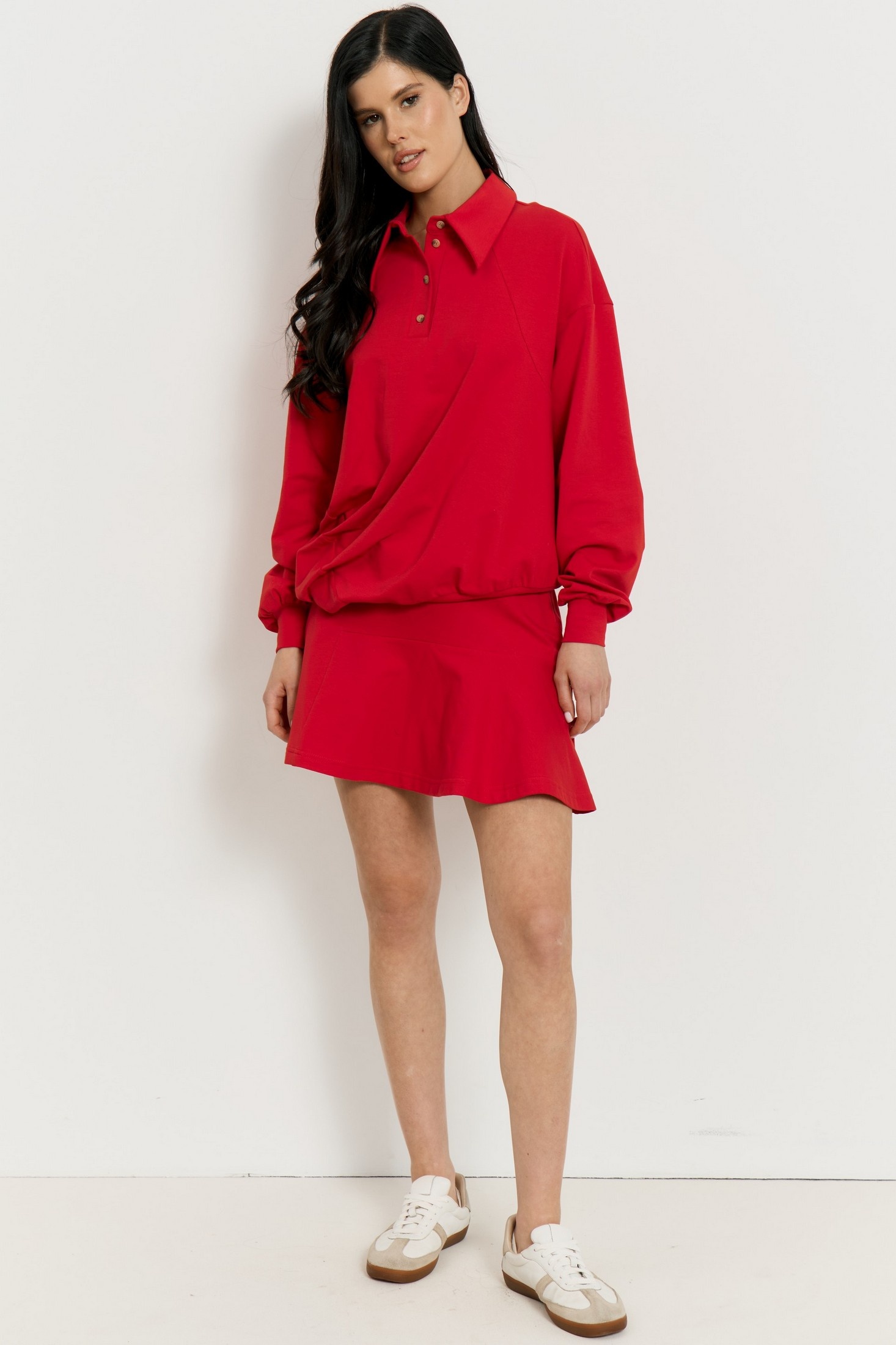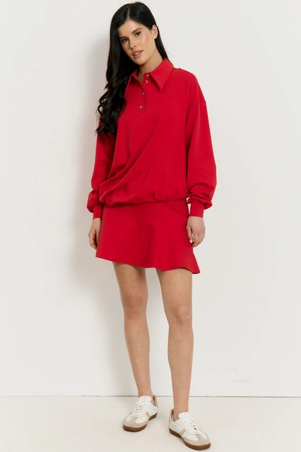 Костюм с юбкой 3544 ATTIKA — идеальный выбор для тех, кто ценит спортивный шик и женственность. Коллекция бренда ATTIKA предлагает комфорт и современный стиль, комбинируя свитшот в стиле поло с отложным воротником и свободными рукавами на манжетах. Мини-юбка А-силуэта прекрасно дополняет оверсайз верх, подчеркивая изящество ног. Костюм выполнен из трикотажа, сочетающего полиэстер, вискозу и эластан, что обеспечивает воздухопроницаемость и удобство на каждый день. Яркий красный цвет подчеркнёт вашу индивидуальность. Идеален для весенних и летних прогулок, сочетая стиль и функциональность в одном образе.