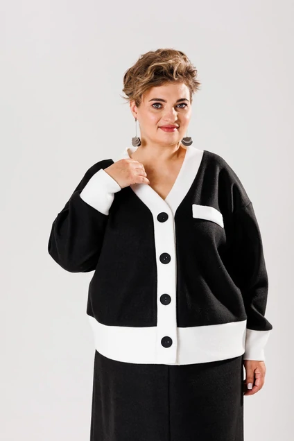 Костюм женский трикотажный кардиган имеет V-образный вырез. Застежка петли-пуговицы, юбка 4-х клинка по поясу резинка, на подкладке.