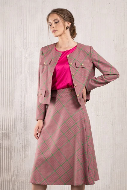 Костюм с юбкой 1419-1 малина+зелень Avanti