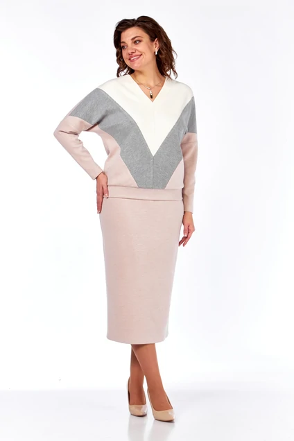 Костюм женский двухпредметный состоит из свободного джемпера и длиной юбки,выполнен из трикотажного полотна под вельвет в мелкий рубчик 3 цветов.