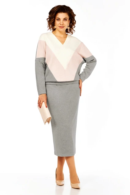Костюм с юбкой 1073 серый Багира АнТа