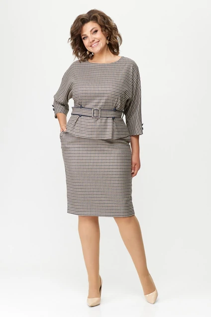 Костюм с юбкой 848-1 синий + клетка Bonna Image