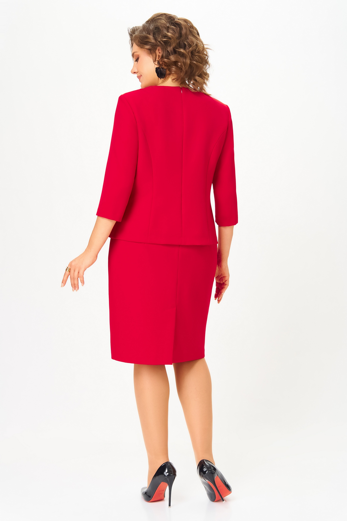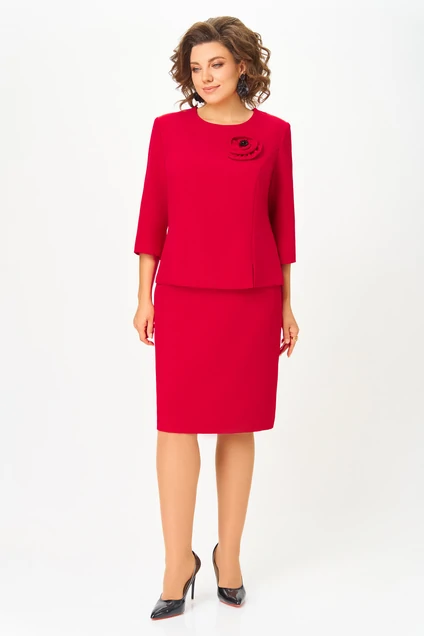 Элегантный костюм с юбкой насыщенного красного цвета - идеальный выбор для деловых встреч и официальных мероприятий. Костюм включает в себя джемпер длиной 56 см и прямую юбку длиной 61 см. Джемпер с ровным вырезом дополнена изящным декоративным элементом в виде цветка на левом плече, что добавляет образу женственности и утонченности. Юбка имеет классическую длину до колена, что подчеркивает элегантность ансамбля. Костюм выполнен из качественного материала, который обеспечивает комфорт при носке в течение всего дня. Идеален для создания запоминающегося и стильного образа.