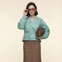 Комплект женский двухпредметный. Блуза полуприлегающего силуэта. Перед с асимметричной застежкой на петли и пуговицы и асимметричным низом. Вырез V-образный. На спинке хлястик. Рукав втачной, короткий. Юбка на подкладке А-силуэта, с съемным декоративным украшением. По переду частично застроченная встречная складка, в боковых швах функциональные карманы. Застежка на потайную молнию и петлю с пуговицей. Пояс отрезной с вставками эластичной тесьмы.