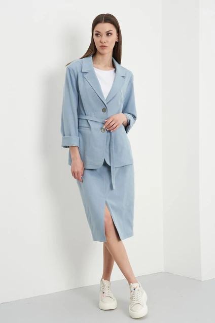 Джинсовые костюмы выигрывают соревнование по востребованности в повседневной жизни. Сегодня мы презентуем для вас самый актуальный вариант. Это новинка в джинсовой моде: юбка-карандаш и стильный джинсовый пиджак.
