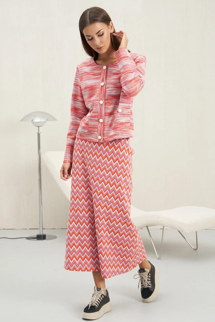 Без него не может обойтись ни один современный гардероб! Да! Это мы говорим о модном миссоне - трикотажном костюме - стильном, уютном, удобном, тёплом ансамбле, который уместен в любой ситуации. Если Вы находитесь в поиске идеального костюма из трикотажа, загляните на нашу страничку! Жакет полуприлегающего силуэта, втачного покроя с центральной застёжкой на отделочной планке и накладными карманами. Модель очень удобная, без подкладки, с эффектными отделочными пуговицами.
