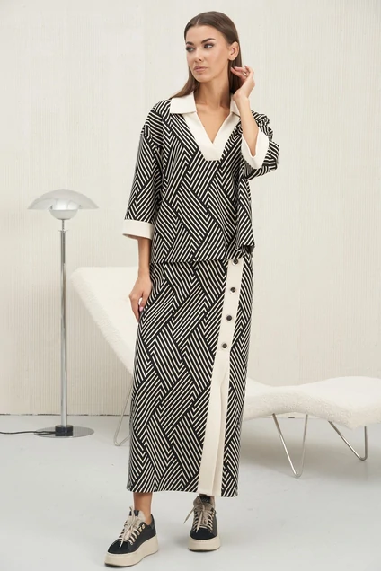 Костюм с юбкой 4640 черный + бежевый FantaziaMod