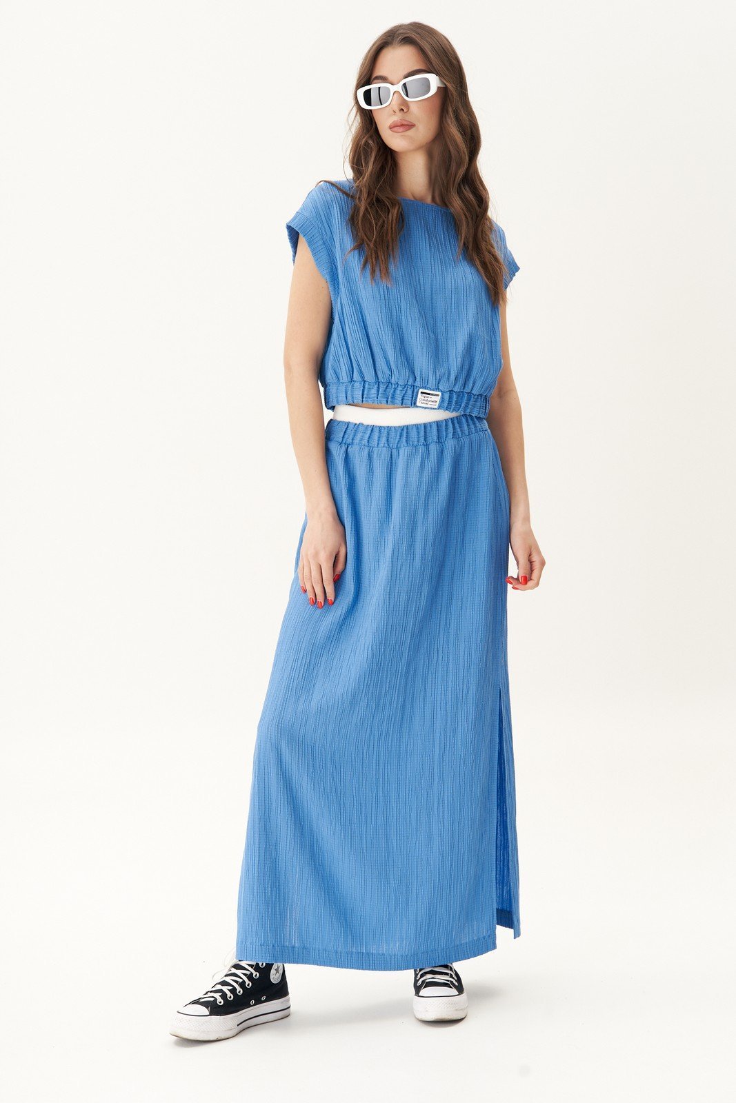 Секрет успеха костюма заключается не только в его красоте, но и в комфорте, в возможности создавать многогранные луки и сногсшибательные ансамбли. Комплект состоит из укороченной блузы-топа и юбки. Такие модели всегда смотрятся стильно и женственно.