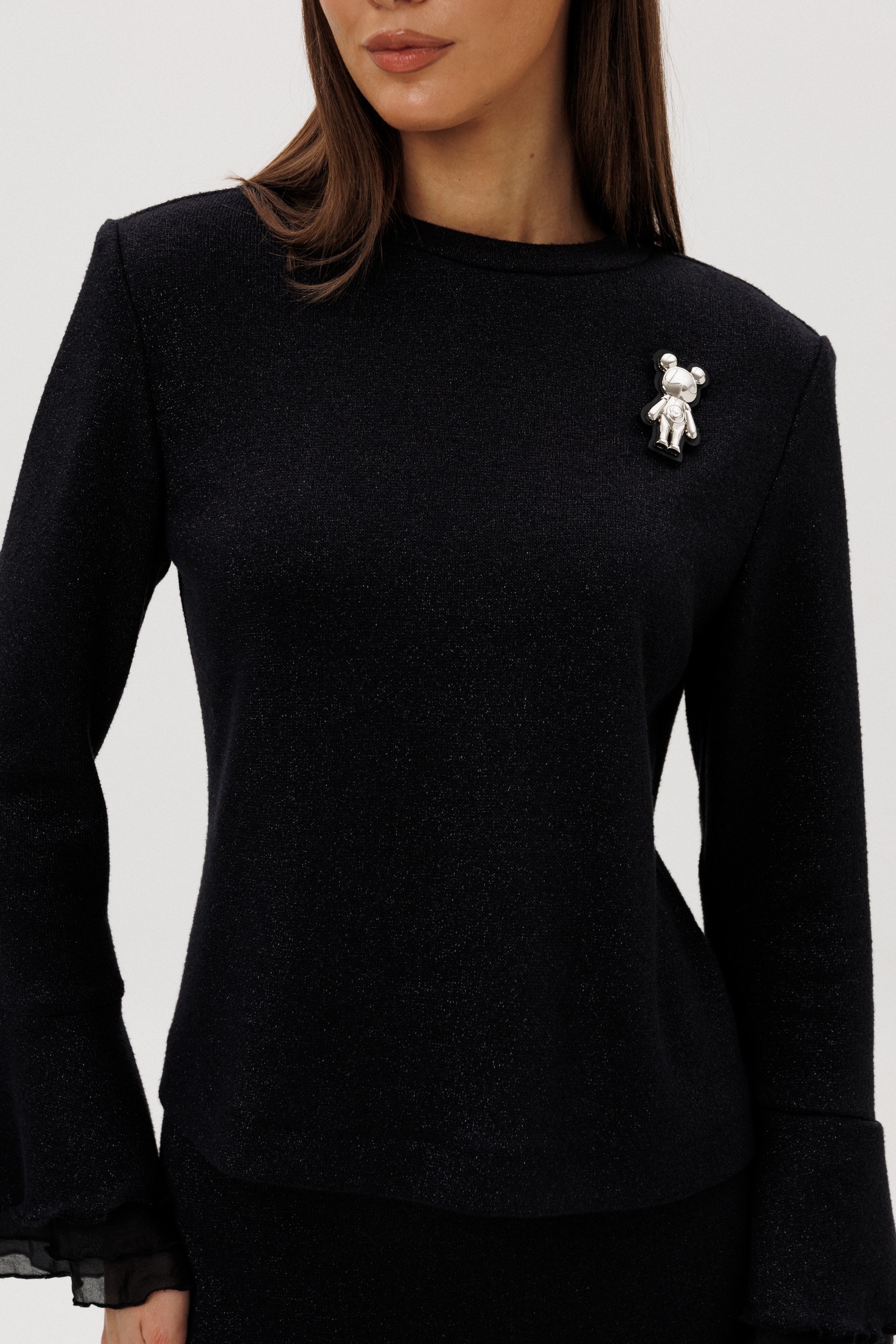Изящный юбочный комплект из мягкого вискозного трикотажа с деликатным вкраплением люрекса — воплощение утончённости и женственности.