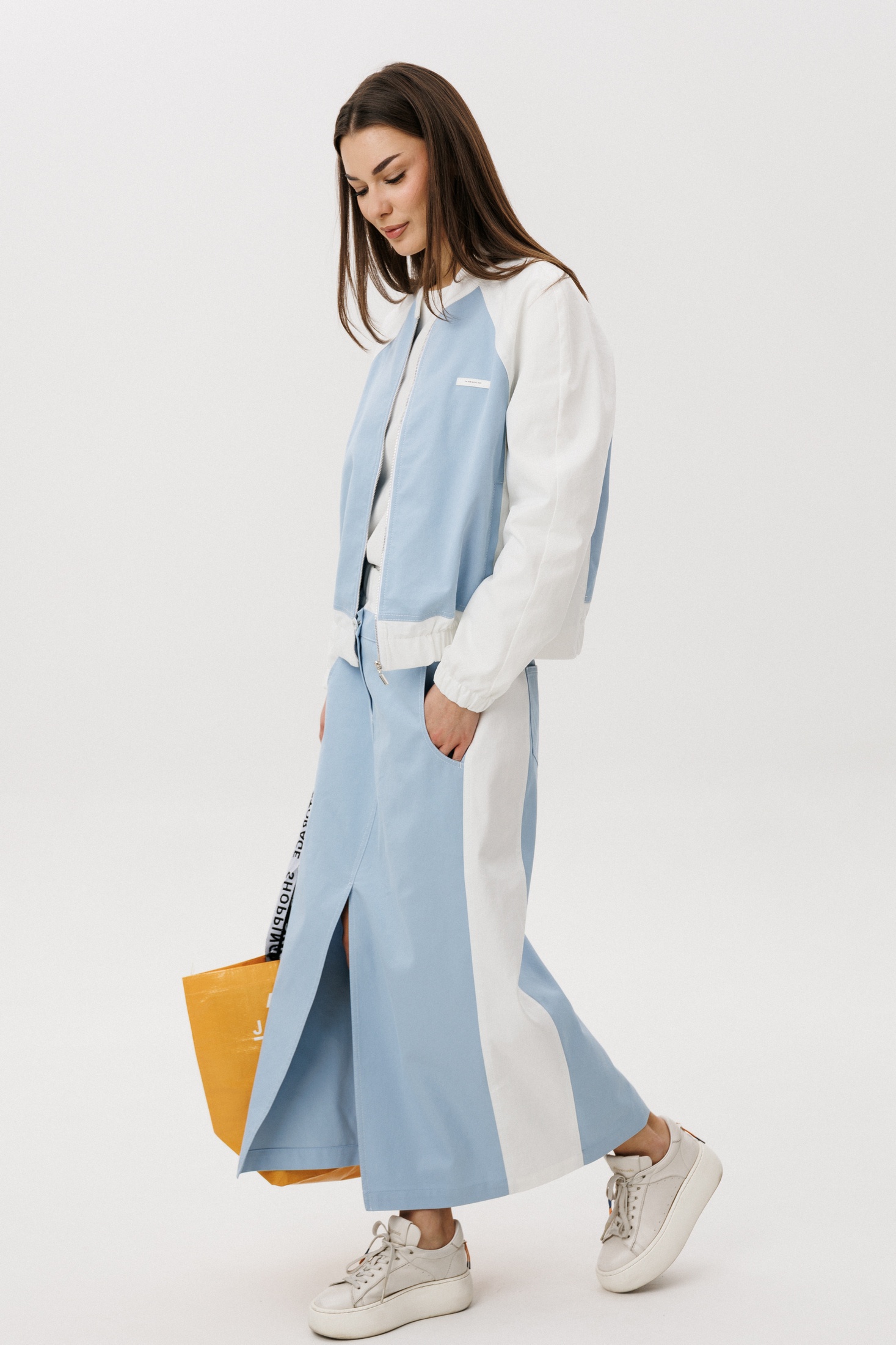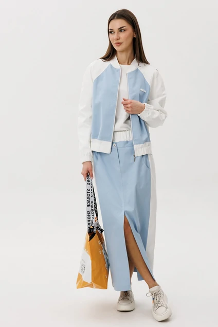Костюм с юбкой 5345 FantaziaMod — это женственный и современный комплект в оттенке «Тиффани», который идеально сочетает комфорт и стиль. Коллекция бренда FantaziaMod предлагает юбку миди прямого кроя с аккуратным разрезом и лёгкую куртку на молнии с контрастными белыми рукавами. Качественное хлопчатобумажное полотно обеспечивает воздухопроницаемость и комфорт в течение всего дня, сохраняя стильный силуэт и форму изделия. Минималистичный дизайн и свежая цветовая палитра делают этот комплект универсальным для повседневной жизни, а также актуальным для любого сезона. Лёгкость и динамика образа дополнены гармоничным сочетанием с кроссовками или лаконичной обувью в спортивном стиле.