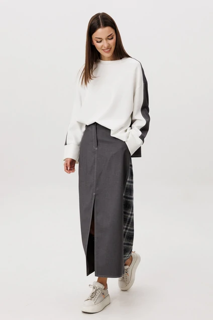 Костюм с юбкой 5377 серый FantaziaMod — идеальный выбор для повседневного образа. Коллекция бренда FantaziaMod предлагает выразительный дизайн с комбинированным свитшотом. Изделие выполнено из вискозного трикотажа, что придаёт мягкость и комфорт. Свободный рубашечный силуэт с круглой горловиной подчёркивает стиль, а спинка с отрезной кокеткой и мягкими складками добавляет утончённости. Юбка А-силуэта отличается стильным разрезом и центральной застежкой. С длиной свитшота около 60 см и юбкой 88 см, это комплект для любого сезона, особенно весной и осенью. Серое цветовое решение делает костюм универсальным для различных ситуаций. Длина рукава с плечом около 76 см.