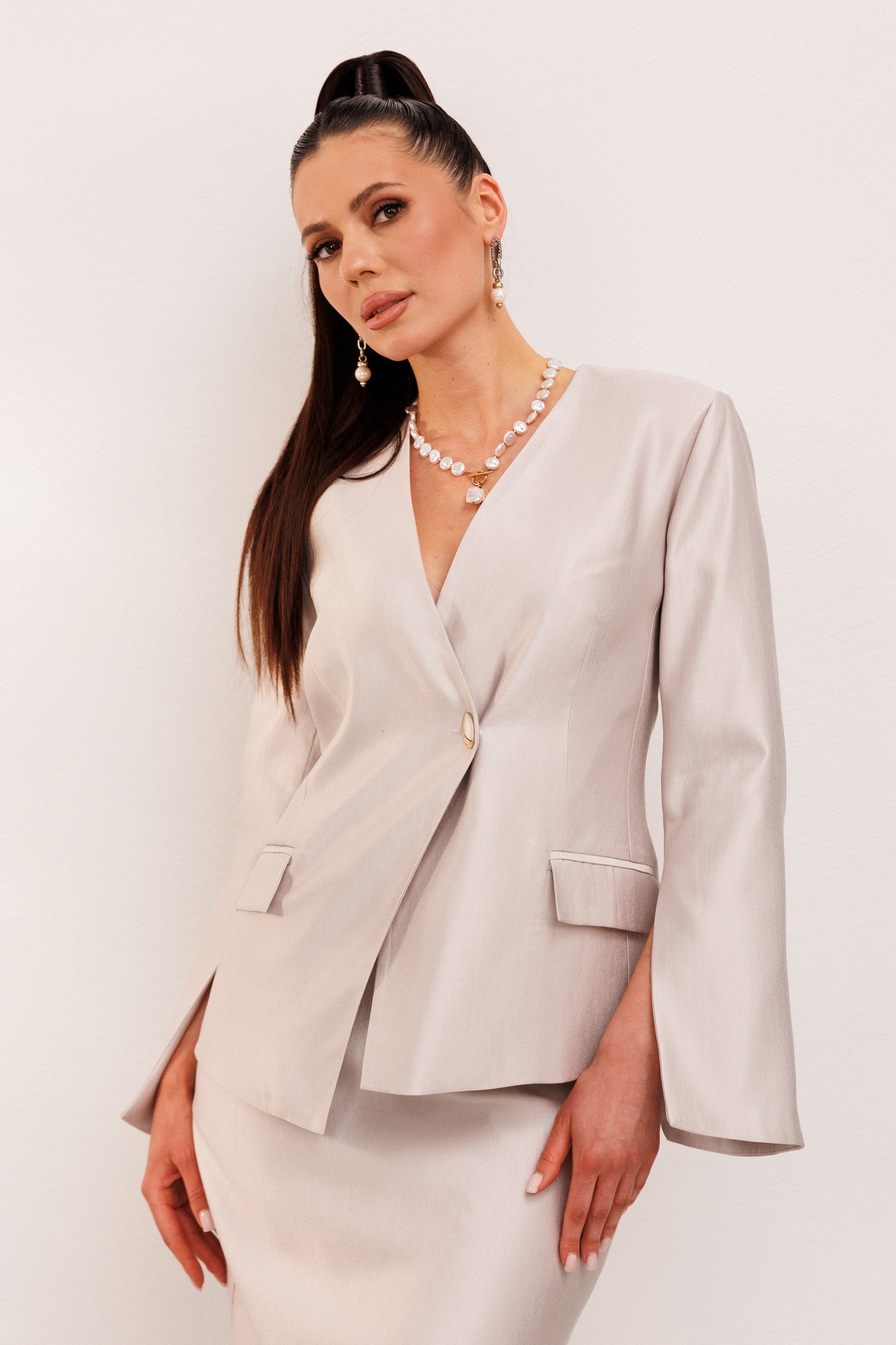 Костюм с юбкой 1000 Галеан Стиль предлагает идеальный комплект для стильного и уверенного образа. Коллекция бренда Галеан Стиль воплощает в себе элегантность и функциональность. Изготовленный из мягкой вискозы с добавлением полиамида и полиэстера, костюм обеспечивает комфорт и долговечность. Жакет приталенного силуэта с асимметричной застежкой на пуговицу дополняет стильный образ. Нарядные прорезные карманы в рамку и декоративные разрезы на рукавах придают модели особый шарм. Полуприлегающая юбка на подкладке с потайной молнией и шлицей завершает этот изысканный костюм. Идеально подходит для офиса или деловых встреч в любое время года.