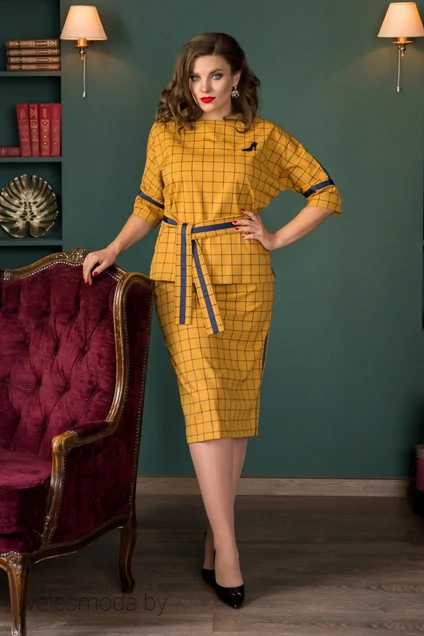 Костюм с юбкой 706 желтый Галеан Стиль
