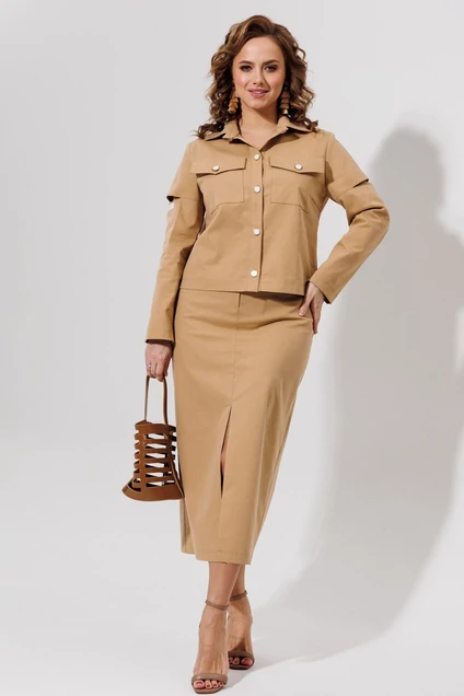 Костюм с юбкой 966 песочный Галеан Стиль
