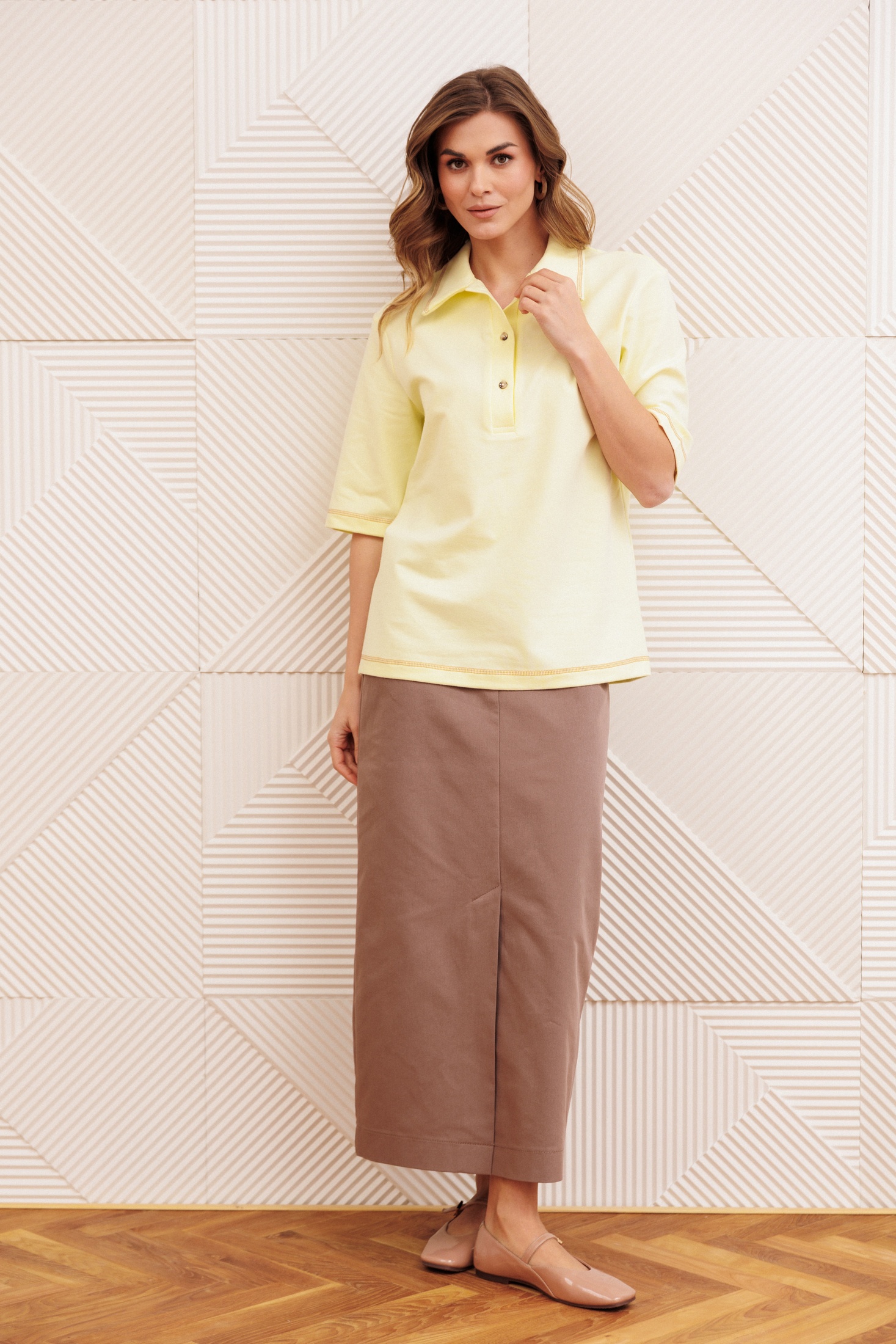 Костюм с юбкой 5425 сливочное масло + капучино GIZART – это стильное сочетание джемпера и юбки, идеально подходящее для весеннего сезона. Коллекция бренда GIZART предлагает вам комфорт и утонченность в каждой детали. Джемпер прямого силуэта выполнен из мягкого хлопка с добавлением спандекса, обеспечивая свободу движения и хорошую воздухопроницаемость. Воротник поло и отделочная строчка добавляют элегантности. Длина изделия – 66 см, рукав длиной 30 см. Юбка из джинсовой ткани с вытачками и застежкой гульфиком на молнии на притачном поясе идеально сидит по фигуре. С легкостью комбинируется с любыми аксессуарами благодаря универсальным цветам – сливочному и капучино. Длина юбки, включая пояс, составляет 90 см. Образ идеально подходит для повседневного стильного лука.