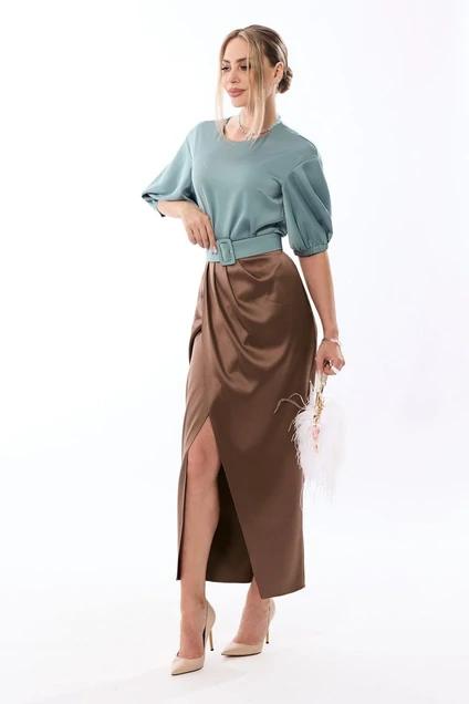 Костюм с юбкой 6588 бирюзово-коричневый Golden Valley