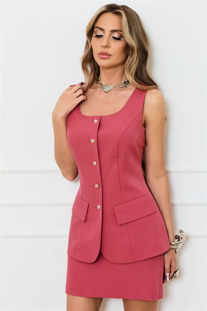 Костюм с юбкой 6702 красный Golden Valley – это элегантное сочетание современного дизайна и комфортного кроя. Коллекция бренда Golden Valley предлагает полуприлегающий жилет с центральной застежкой на пуговицы и круглым вырезом горловины. Жилет декорирован рельефами, переходящими из проймы до низа, а также оснащен прорезными карманами с листочками и клапанами. Юбка без пояса, с обтачкой и потайной молнией по среднему шву, добавляют модели утонченности. Изготовленный из полиэстра и спандекса, этот костюм обеспечивает свободу движений и комфорт в течение всего дня. Ярко-красный цвет делает его идеальным выбором для офисных встреч и прогулок в деловом стиле в любое время года.