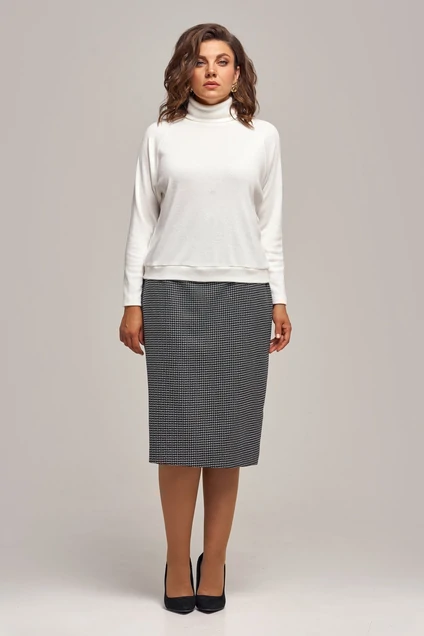 Костюм, состоящий из юбки и джемпера. Джемпер выполнен из мягкого трикотажного полотна с добавлением ангоры. Джемпер полуприлегающего силуэта, снизу на планке. Рукава реглан. Горловина стойка. Юбка прилегающего силуэта с завышенной линией талии, на подкладке..Застежка на тесьму-молнию и пуговицу. В комплекте съемный пояс.юбка: вискоза 70%, п/э 25%, спандекс 5%
