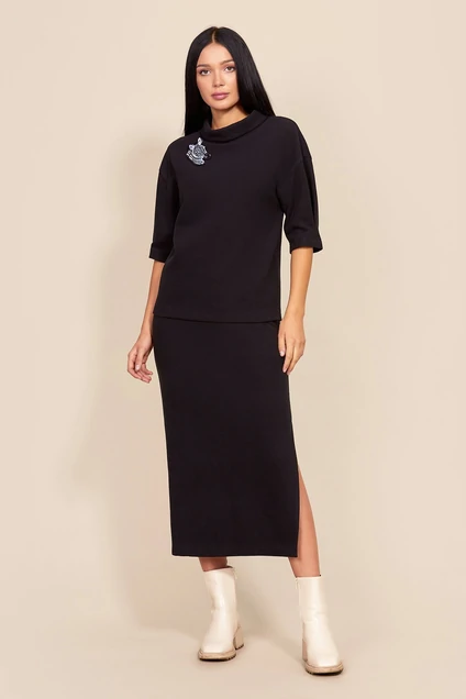 Комплект женский из трикотажного полотна, состоящий из джемпера и юбки.