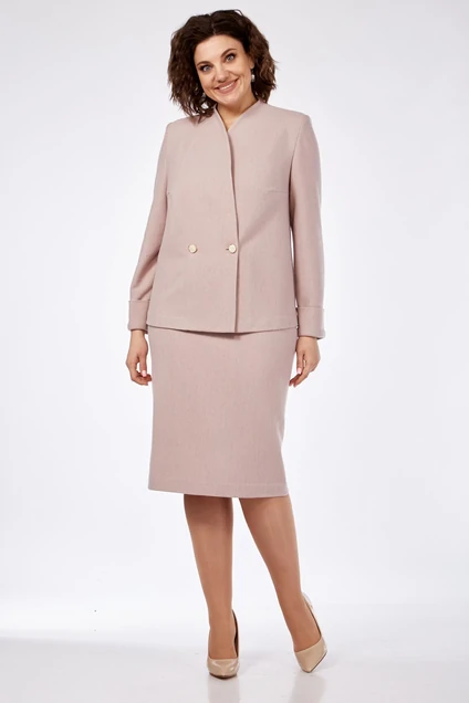 Костюм женский: кардиган и юбка. Кардиган без подкладки , застежка на две пуговицы. Силуэт прямой, рукав втачной. Понизу рукав с отложной манжетой. Спинка без особенностей. Юбка на подкладке, прямого силуэта слегка зауженная к низу. Пояс на резинке.