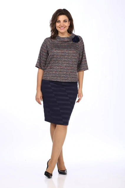 Костюм с юбкой 262 + 395-1 синий + меланж Klever