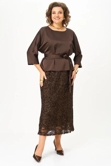 Костюм с юбкой 1334 коричневый Кокетка и К