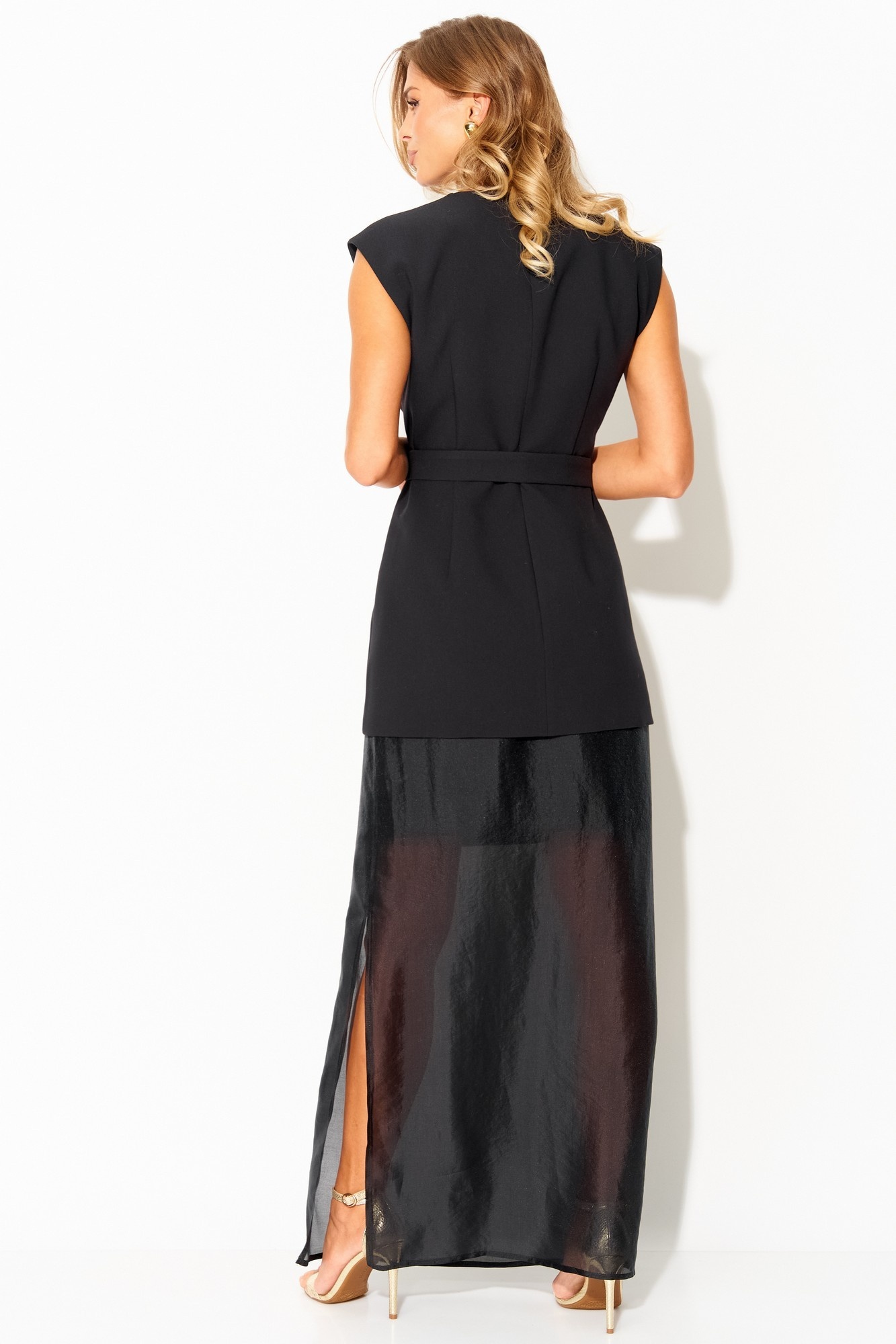 Нарядный юбочный комплект от LAIKONY, состоящий изжилета из костюмной ткани и полупрозрачной юбки из тенсела.